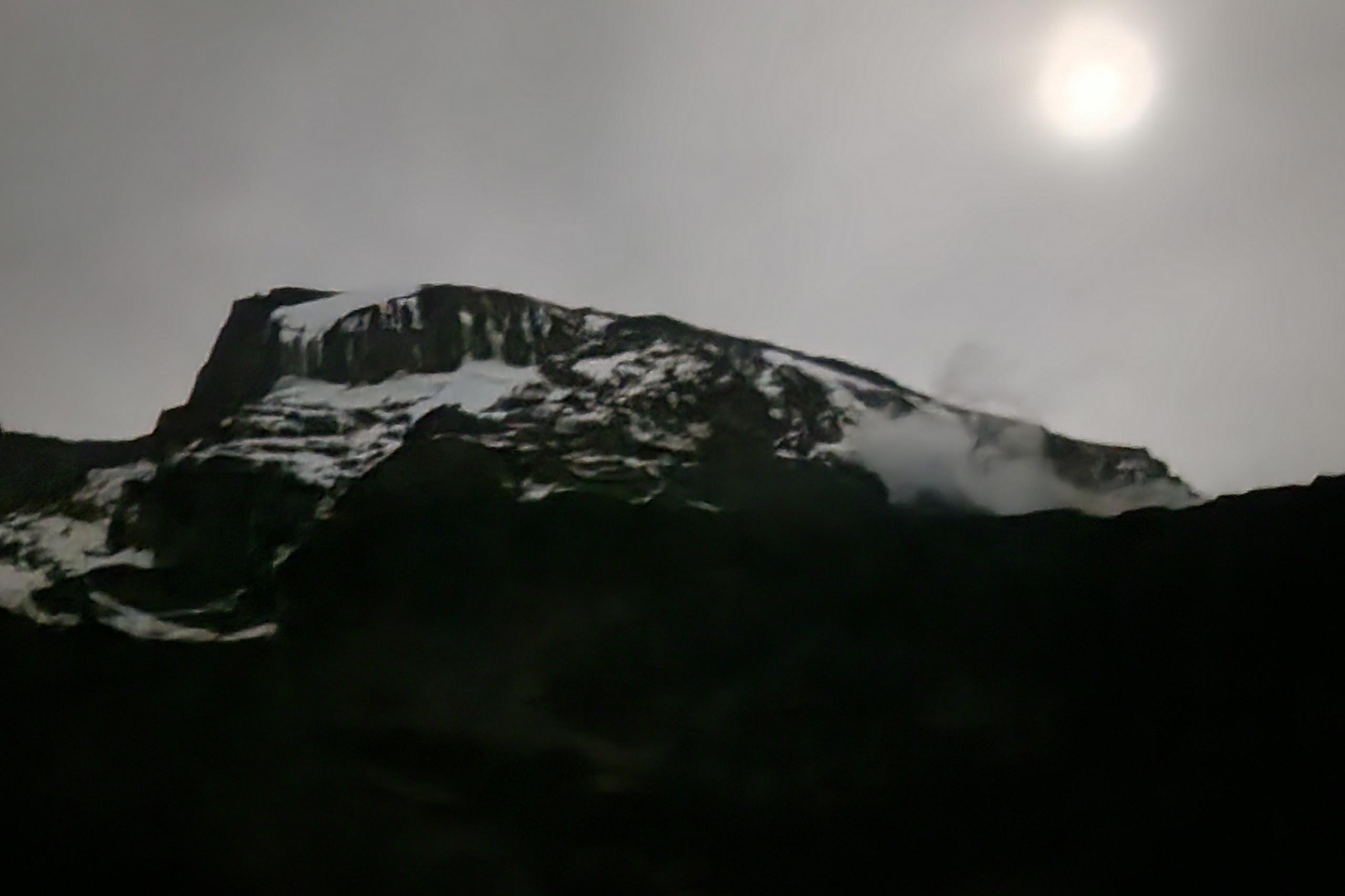 Midnight ascent to Stella Point (5,735m), then to Uhuru Peak (5,895m). Descend to Barafu, then further down to Mweka Camp (3,100m). [11–15 hours walking, 13km]