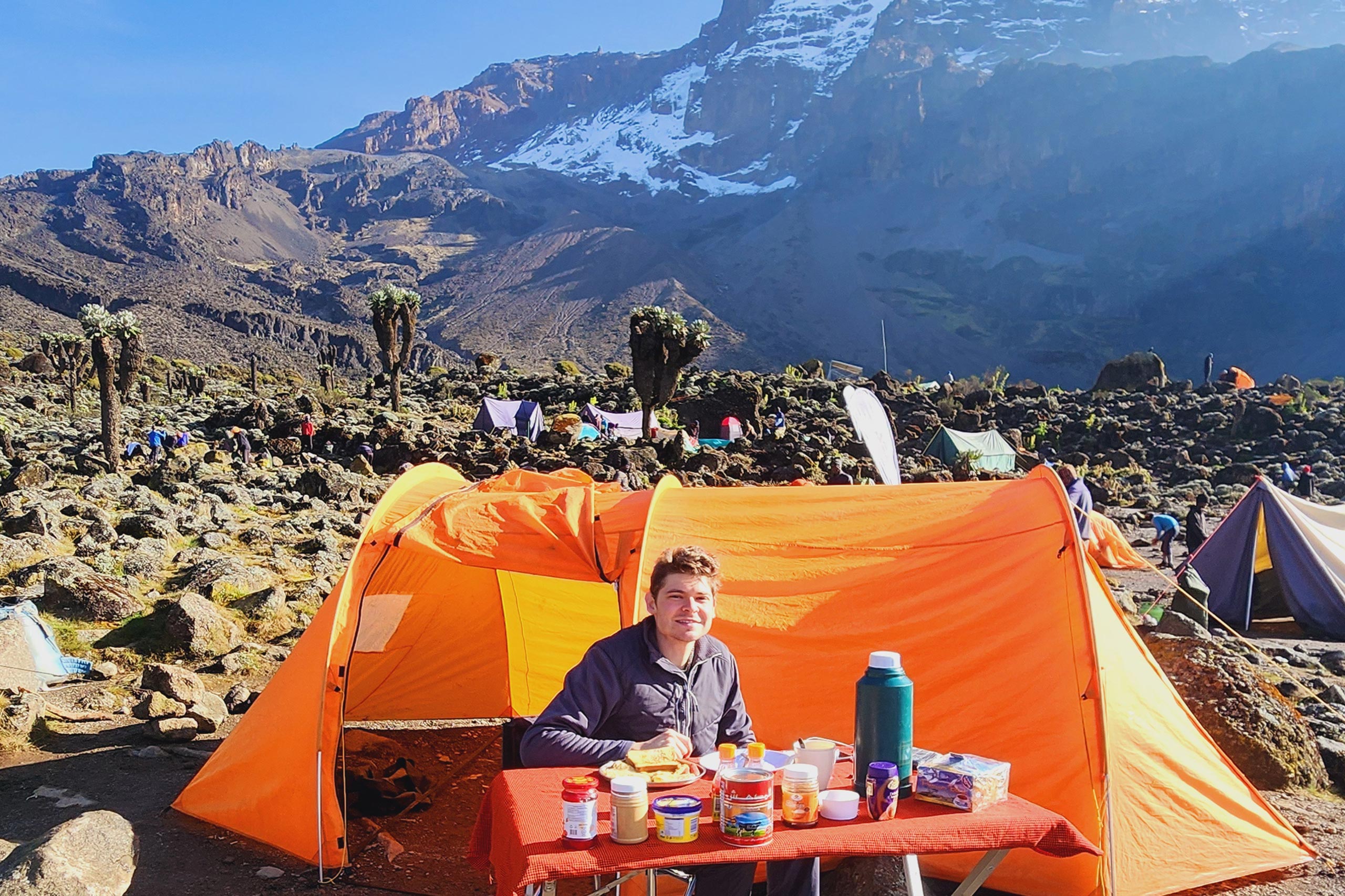 A steep but rewarding climb to Mawenzi Tarn (4,330m/14,150ft), located beneath the spires of Mawenzi. Afternoon free for rest or exploration. [3–4 hrs walking, 5km/3 miles, Alpine desert zone]